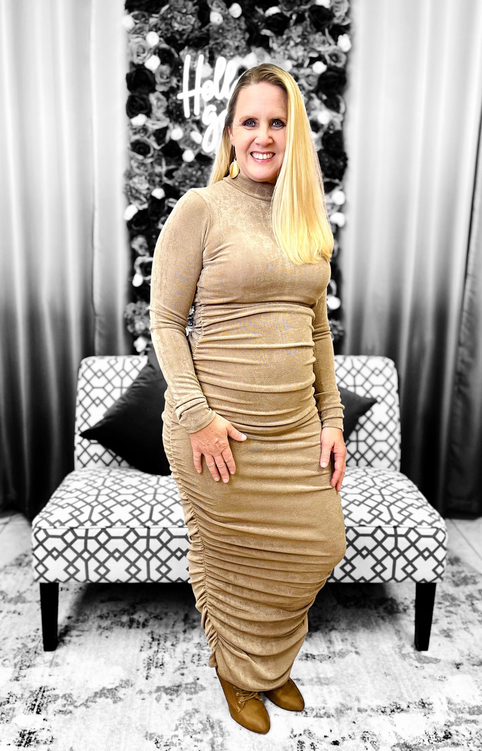 Black & Gold Smocked Dress