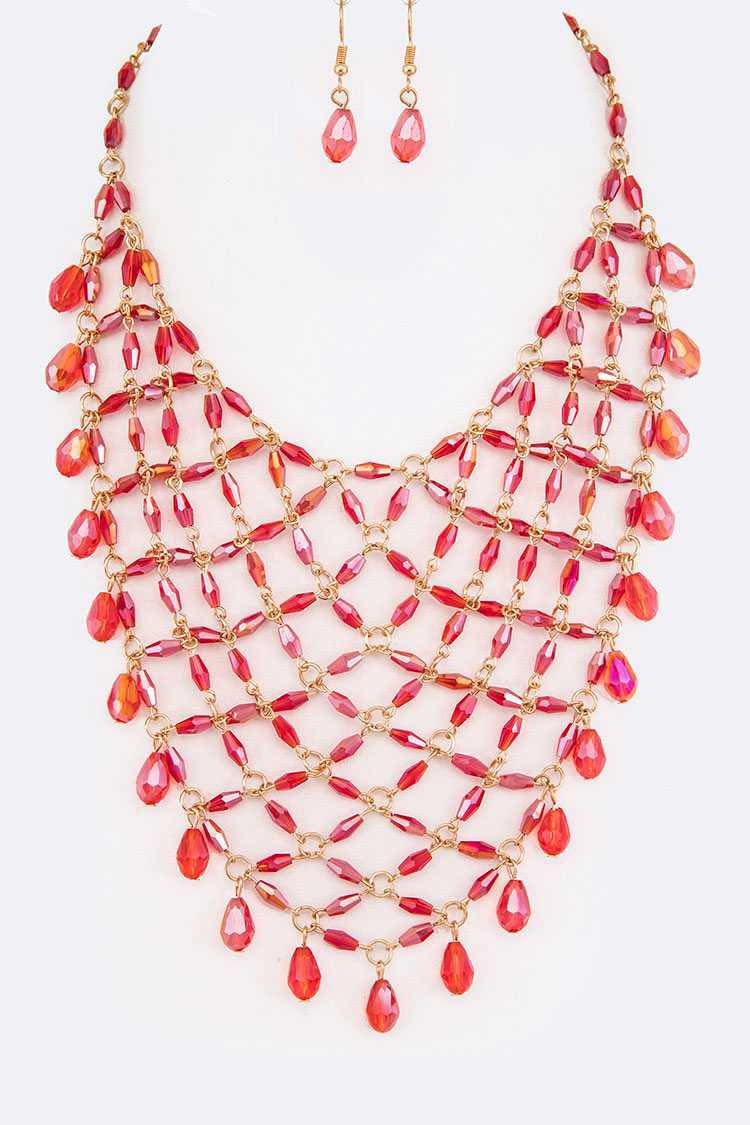 Fringe Beads Necklace - Red