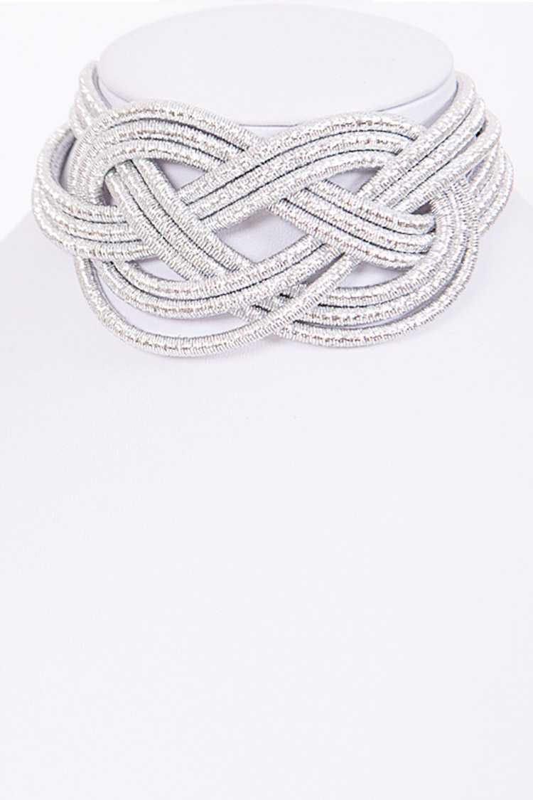 Metallic Braided Collar Necklace - Silver
