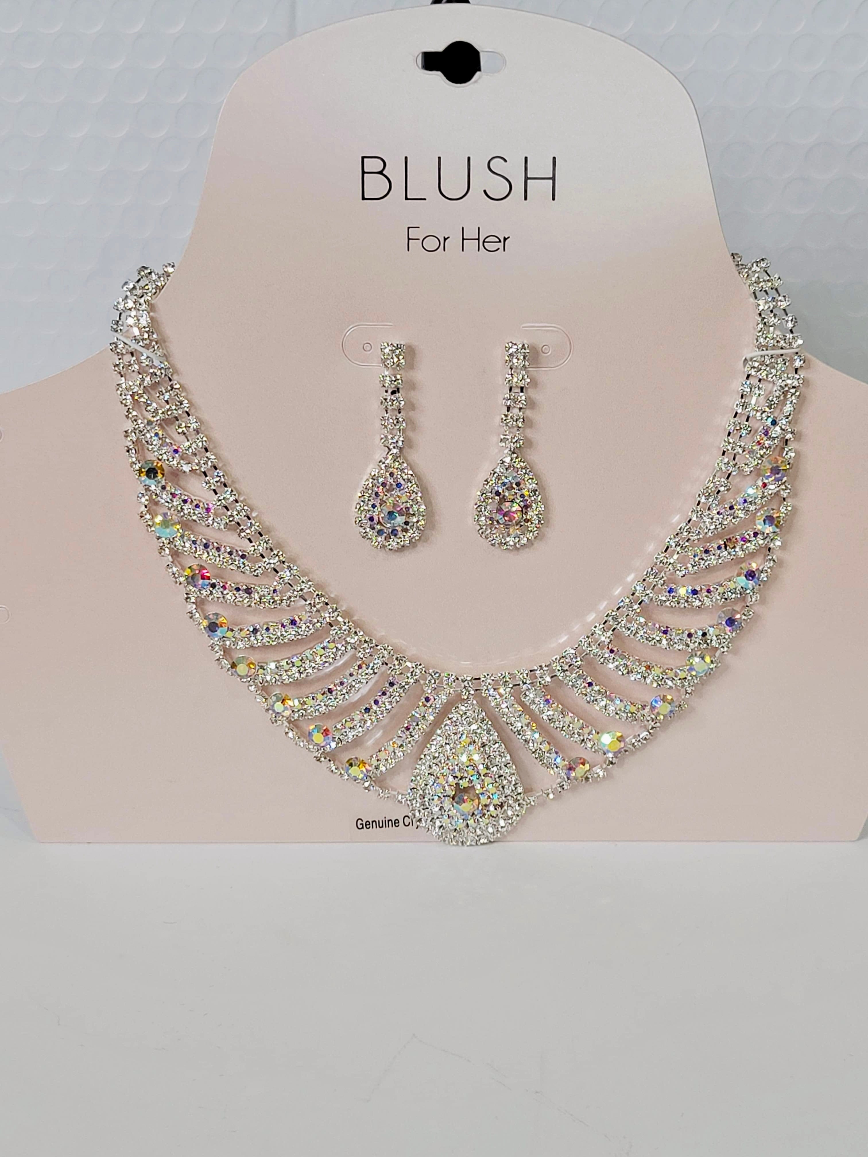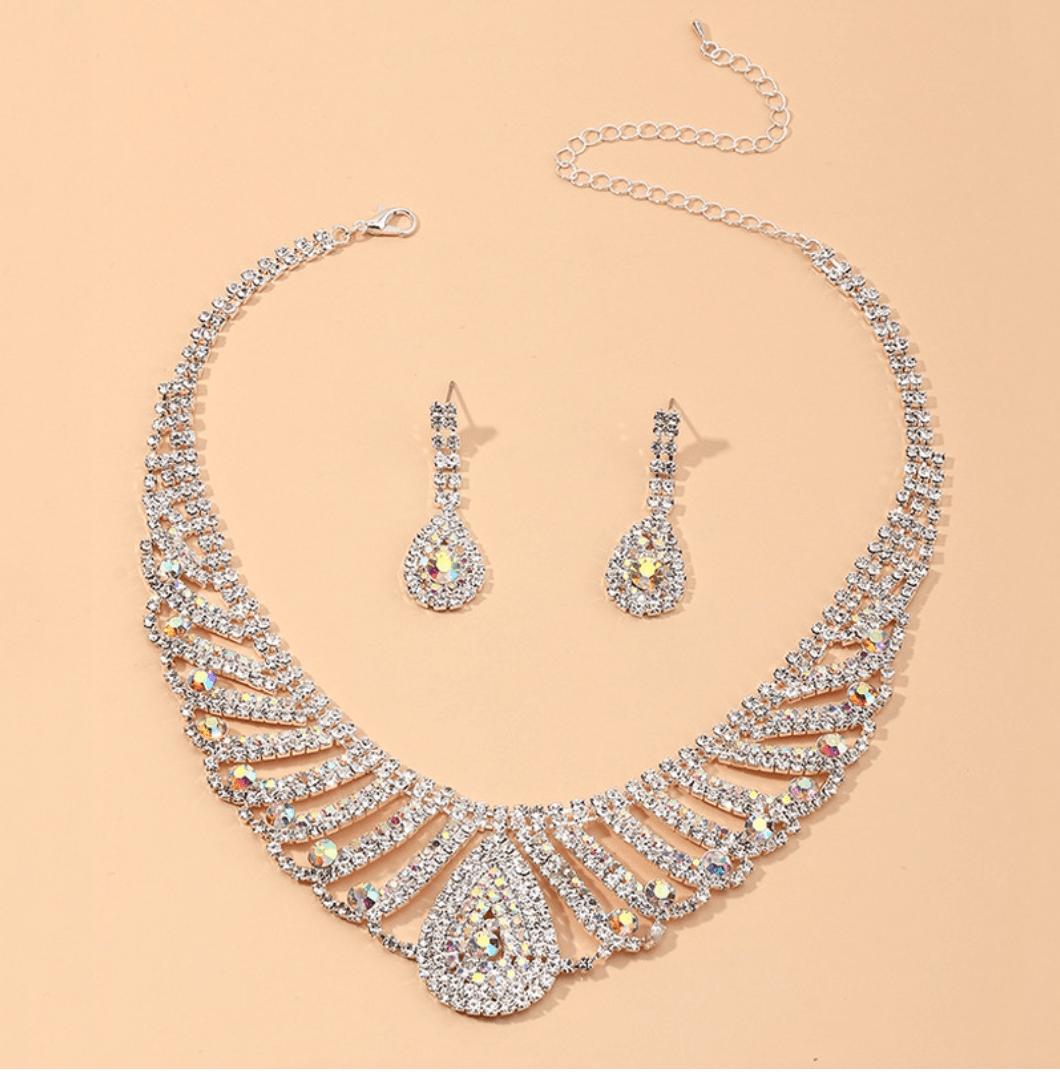 Rhinestone Necklace Earrings Set